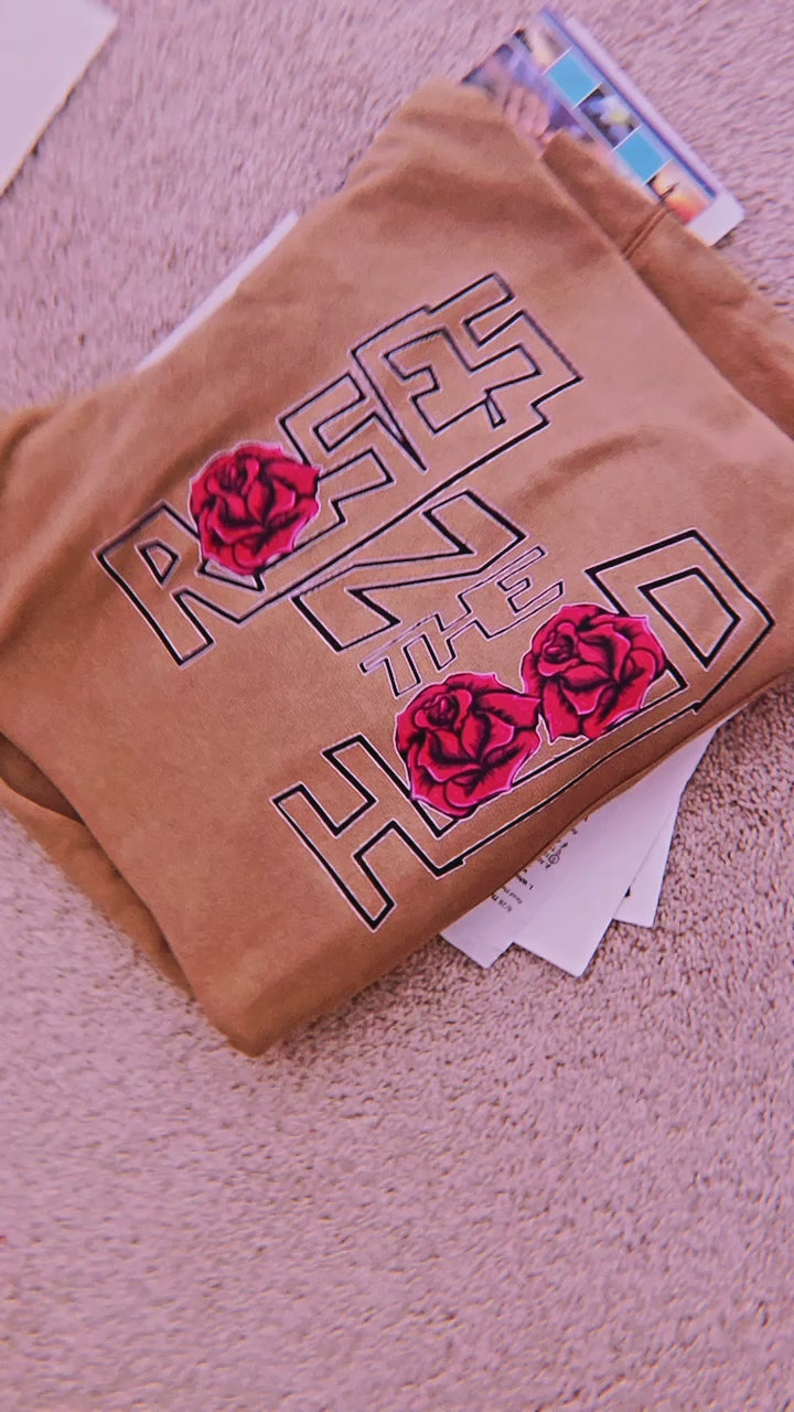 with Rosesinthehood on the front & "Welcome to The Garth ' Printed on the back.